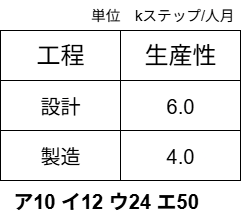 設問には、設計と製造の二つの工程があり、これら二つの生産性でソフトウェアを開発した際の工数の合計が答えとなります。