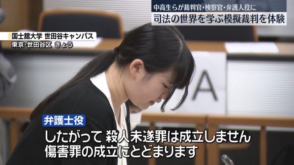 そこから、司法へ関心が高まった私は模擬裁判に参加し、弁護士役を務めることで、社会で「悪」とされる人を守るという新しい正義の形を学びました。