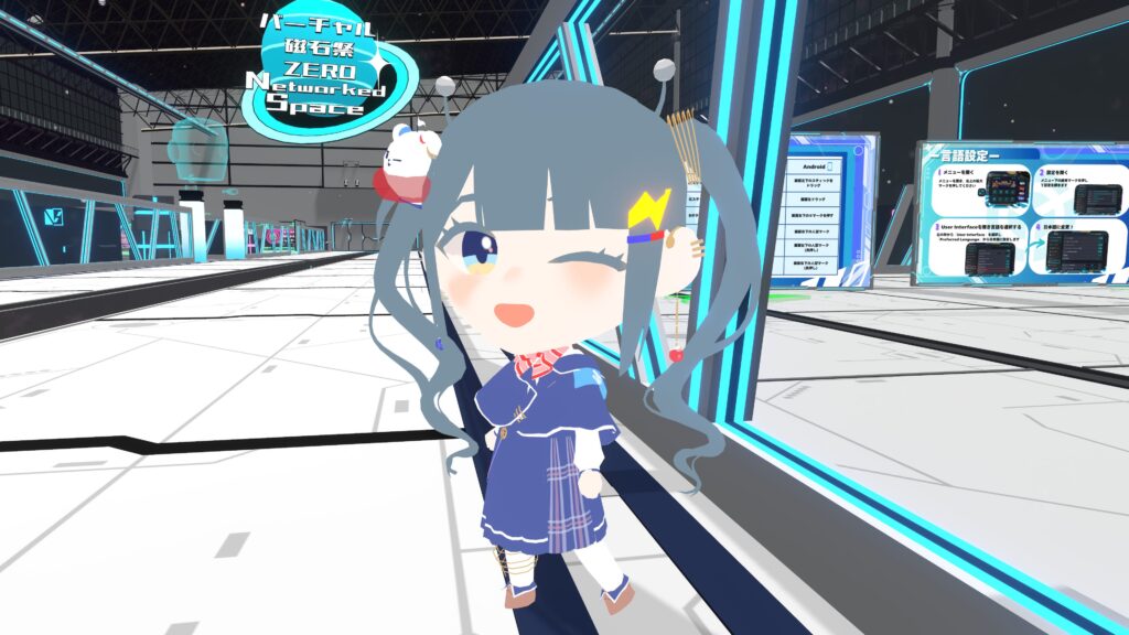 そこで、前年度から続くバーチャル磁石祭に、既存のイベントを参考にして、新たな「バーチャル磁石祭ZERO Networked Space」を開催し、幕張メッセを再現した空間上に同好会がブースを出展できるようにしました。
