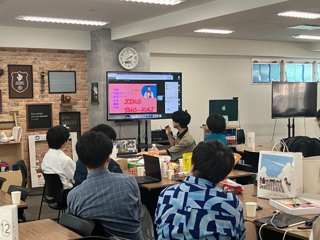 今回の新入生歓迎会は、東京の会場で、オフラインとオンラインを組み合わせたハイブリッド形式で開催されました。