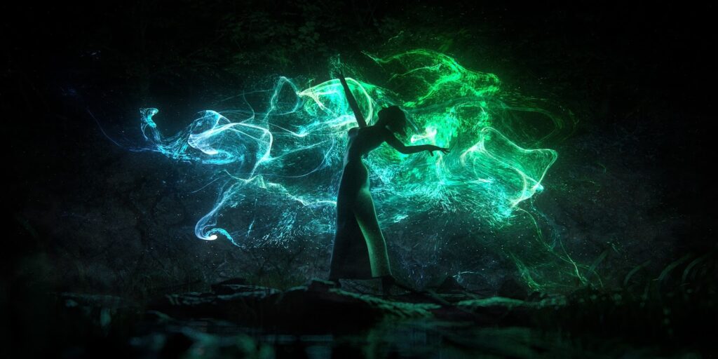 例えば、下の作品のアイデアは、ふと頭に浮かんだイメージをもとにしています。後ろのパーティクル(※8)の表現や、少しクリエイティブな要素、そして視覚的に美しいと感じる要素を取り入れながら、形にしていきました。