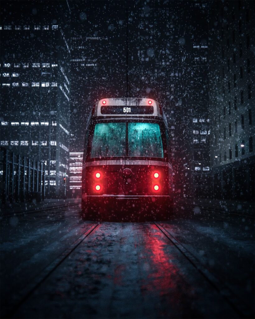 カナダ、トロントの路面電車をコンセプトに制作しました。特にこだわったポイントは”雪のボケ感”と”路面電車の汚れ”です。どうすれば実際のカメラで撮ったような絵になるかを意識しました。