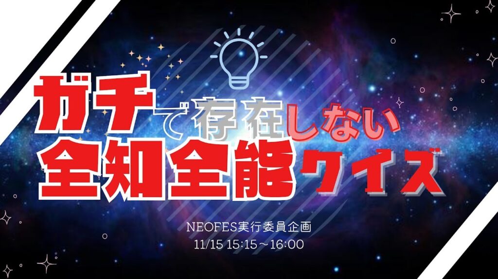続いてはネオフェス実行委員による「ガチで存在しない全知全能クイズ」。存在しない言葉の意味を知ったかぶりで説明し、誰が観客を納得させられるか競います。
