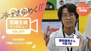生徒数がついに3万人を超えたN高グループ。多様な生徒が様々な分野で活躍しています。そんな中、キラリと光る実績を生み出した生徒もたくさんいます。実績を生み出した生徒は、どんな活動をして、どうやって実績を生み出したのか……気になりますよね! そこでN高グループ新聞では「活躍生徒」と題してインタビュー企画を始めることにしました。第51弾となる今回は、独創的なアイデア、卓越した技術を持つ17歳以下の学生を支援するプログラムである「未踏ジュニア(2025年度)」に選ばれた、野田蒼馬さんへのインタビューをお届けします。