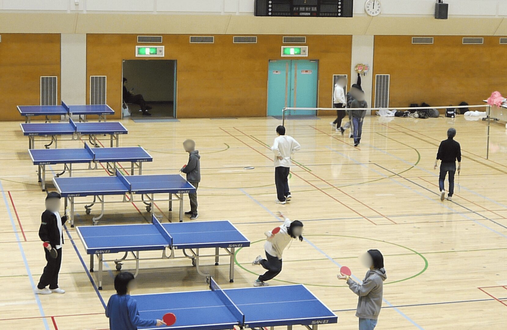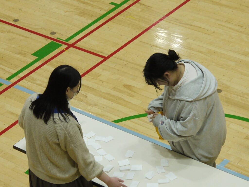 お昼休憩では、急いでお昼を済ませて、なかなか来ることがない体育館でバトミントンや卓球を楽しむ姿が見られました。