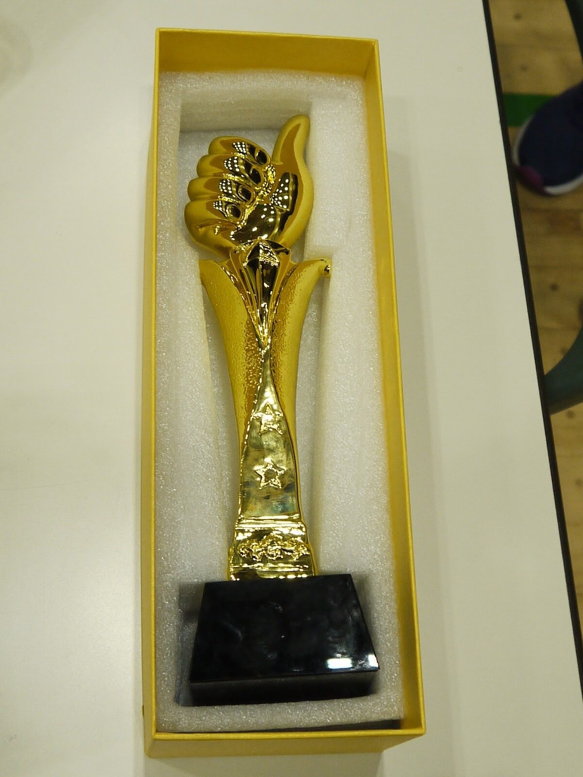 写真のキラキラのトロフィーが授与されました!