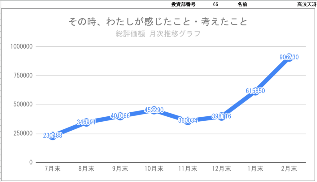 今年は7月の半ばに投資部から資本金をいただいたのですが、資本金20万円を2月の時点で約90万円まで増やすことができました。