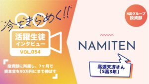生徒数がついに3万人越えを記録したN高グループ。多様な生徒がさまざまな分野で活躍しています。そんな中、きらりと光る実績を生み出した生徒もたくさんいます。実績を生み出した生徒は、どんな活動をして、どうやって実績を生み出したのか……気になりますよね!そこでN高グループ新聞では「活躍生徒」と題してインタビュー企画を始めることにしました。第54弾となる今回は、投資部に所属し、7ヶ月で資本金を90万円にまで伸ばすことができた高浪天冴(たかなみてんご)さんへのインタビューをお届けします!