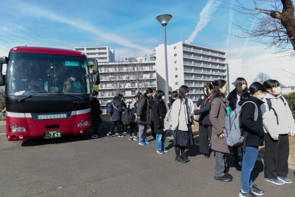 バスの中では簡単なアイスブレイクが行われ、隣の席の人と自己紹介しあい、今年の抱負などを話しました。東北・北海道からきている人もいましたが、関東からの参加者も多い印象でした。参加者が全員女子生徒だからか、序盤から和やかな雰囲気に。川内キャンパスに到着する頃には、雑談で盛り上がる人もいました。