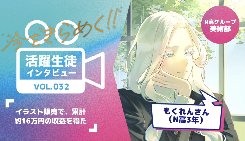 取材・文=0(S高4期・通学コース)写真・イラスト=もくれんさん 生徒数がついに3万人を超えたN高グループ。多様な生徒が様々な分野で活躍しています。そんな中、キラ... -